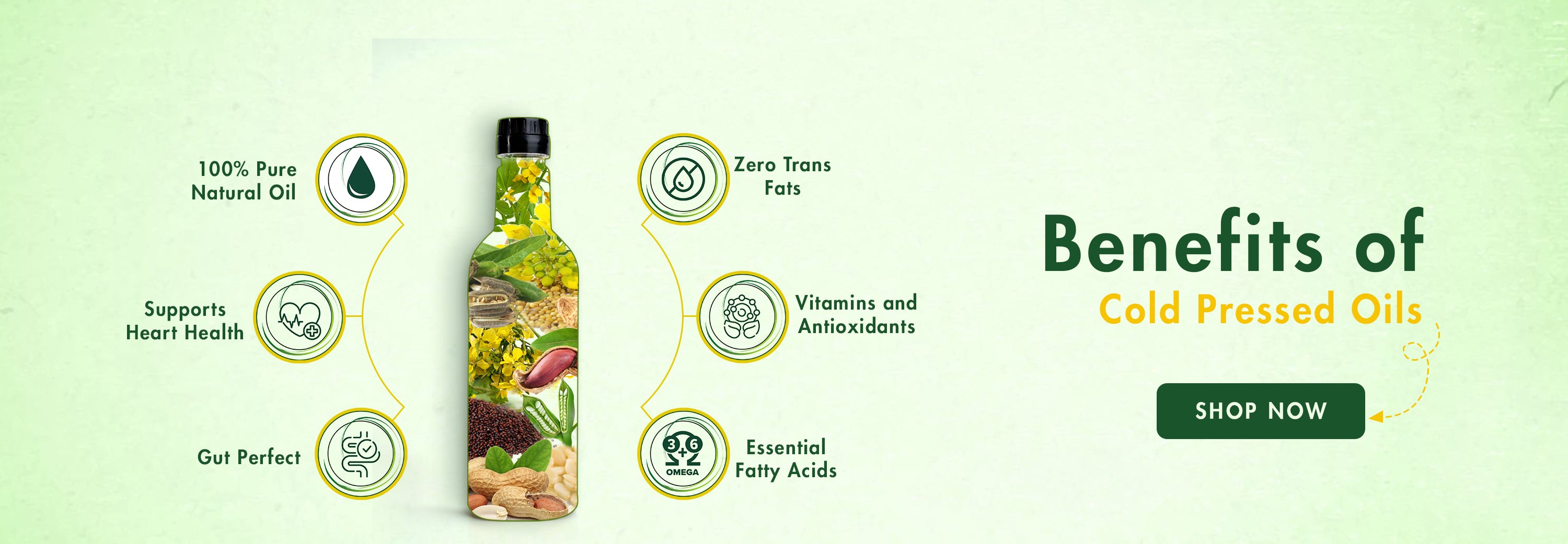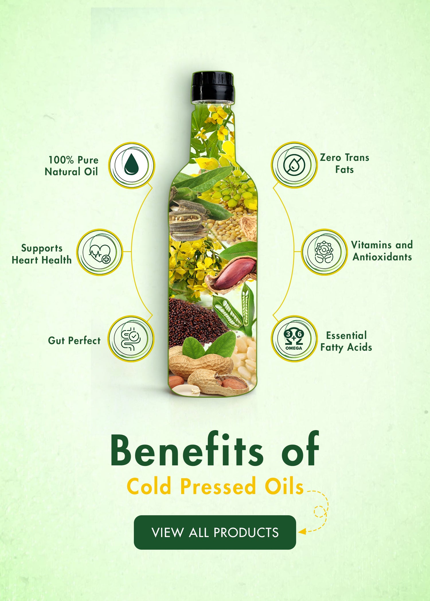 Cold-pressed oils are packed with antioxidants, Omega-3 & 6 fatty acids, and essential vitamins. Some common benefits include:
