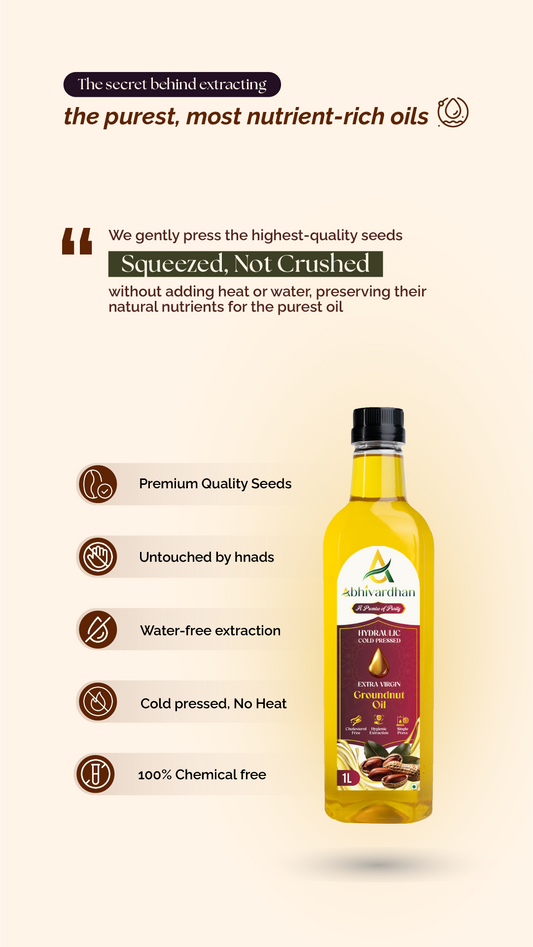 Abhivardhan Hydraulic Cold-Pressed Groundnut Oil – Extra Virgin, 100% Pure, Unrefined, and Chemical-Free