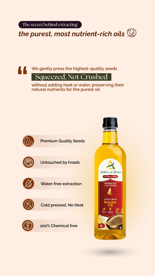 Abhivardhan Hydraulic Cold-Pressed Sesame Oil – Extra Virgin, 100% Pure, Unrefined, and Chemical-Free