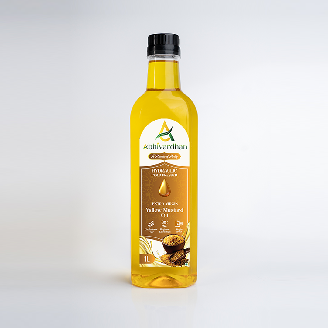 Abhivardhan Hydraulic Cold-Pressed Yellow Mustard Oil – Extra Virgin, 100% Pure, Unrefined, and Chemical-Free